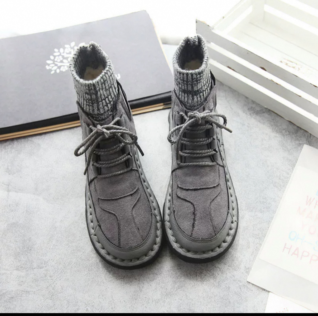 ✨勁靚三色毛線短boots✨ 氣質百搭時尚款🌟三個色都咁靚,黑白百搭,灰色型格🔥熱賣火爆款🔥 Size:35-40